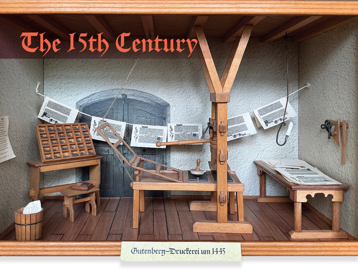 The century from the early 1400’s until the early 1500’s (which I will call the fifteenth century) in western Europe was a period of many sweeping changes. The Middle Ages transformed into the Renaissance. The feudal system ended, and the invention of the printing press allowed changes in society that led up to the Reformation.